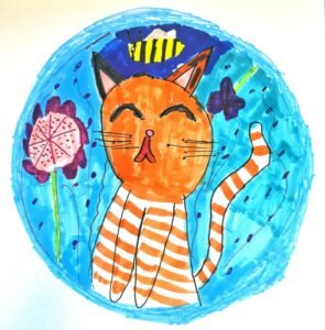 Ventspils Mākslas kola. Leisana Baibekova, 7 gadi, “Kaķapriekss”. Sk. Ieva Pastare