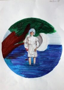 Māras Muižnieces Rīgas Mākslas skola. Paula Abraškina,14 gadi. “Krītošais enģelis”. Sk. Ieva Kalniņa